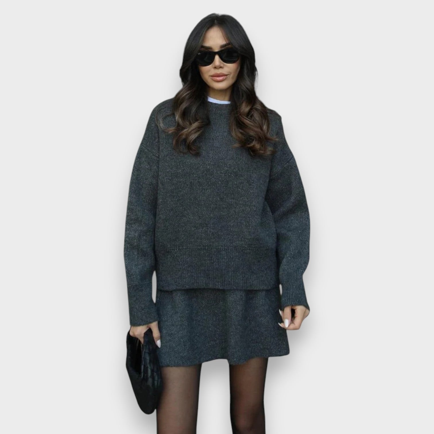 Σετ Πλεκτού για Αυτήν: Oversized Πουλόβερ & Μίνι Φούστα – Αβίαστο Στυλ σε Διπλό