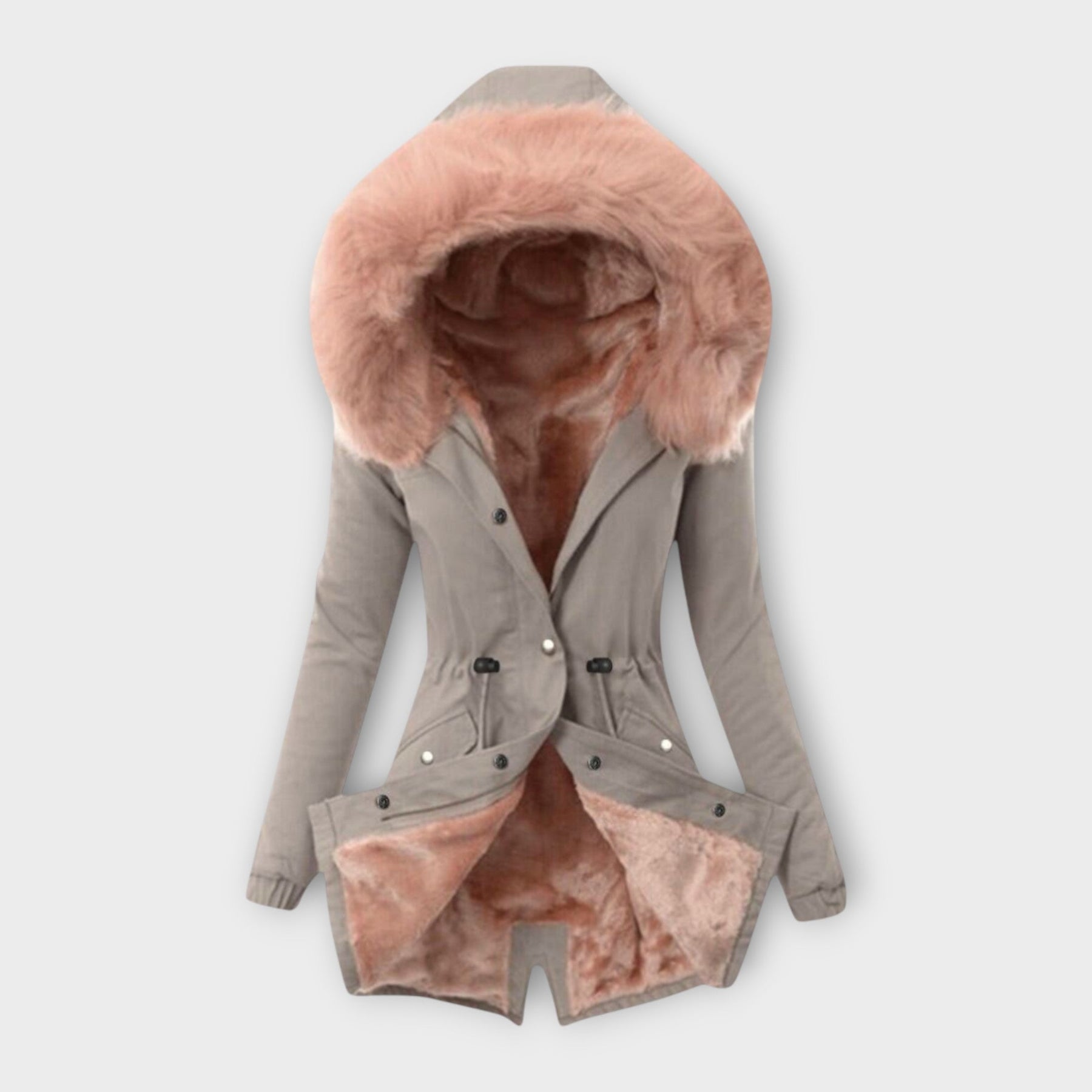 Η ευρύχωρη κουκούλα είναι επενδεδυμένη με μαλακή τεχνητή γούνα, η οποία όχι μόνο προστατεύει από τον άνεμο και τον καιρό, αλλά προσθέτει και μια νότα κομψότητας.